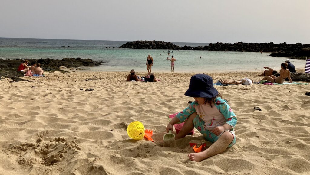 Almost two years ago now in late March 2024, we headed to Lanzarote in the Canary Islands for our first holiday as a family of four. Lanzarote is sunny all year round so after a long winter some sunshine was needed. We found cheap mid-morning flights – great times with a 3-and-a-half-year-old toddler and 4-month-old baby – and a lovely Air BnB near Playa Blanca that had a shared pool.